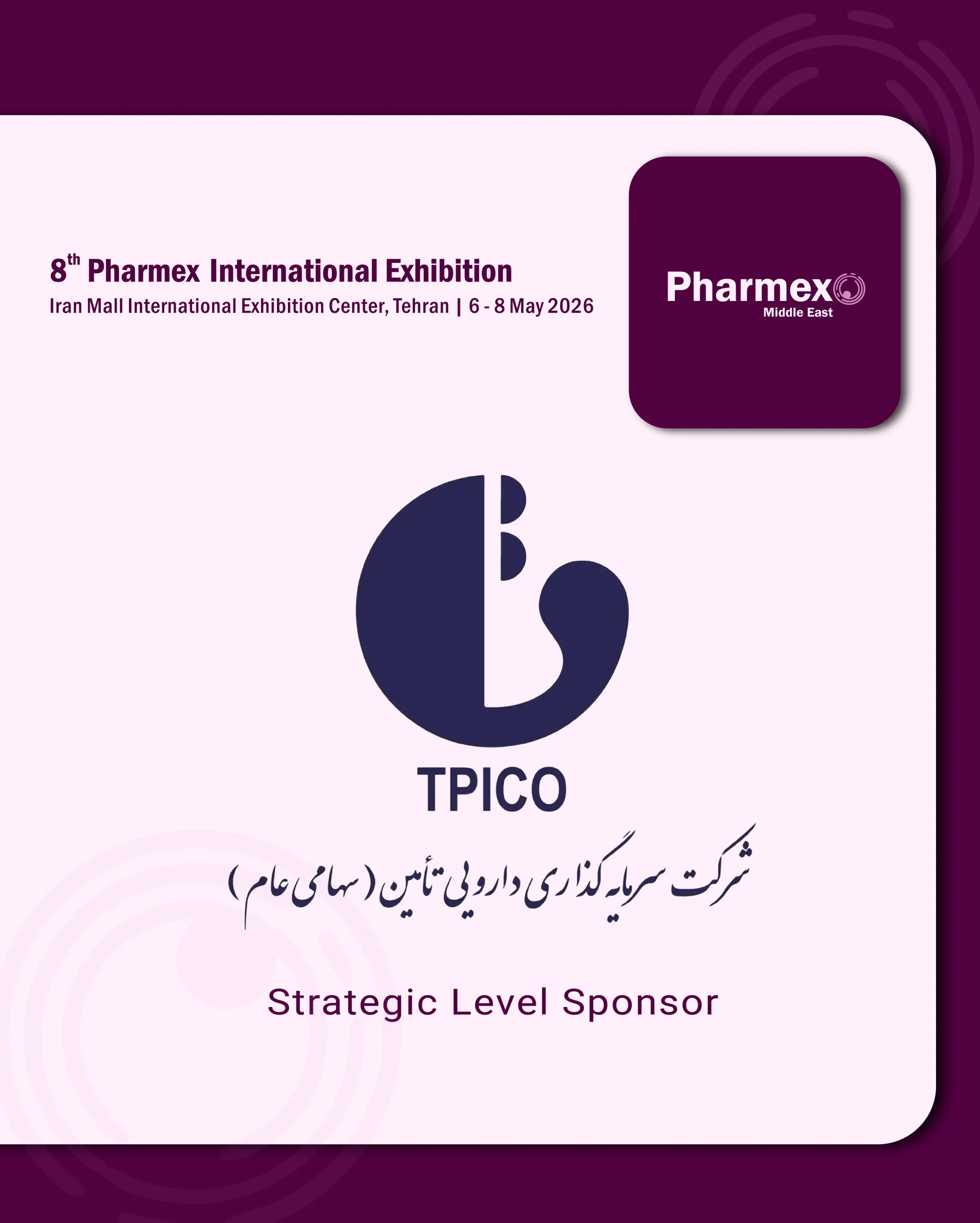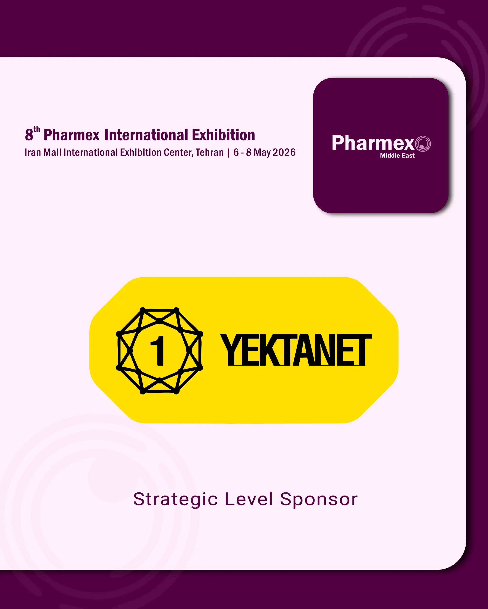 هشتمین دوره این نمایشگاه با عنوان Pharmex Middle East 2026 از ۱۶ تا ۱۸ اردیبهشت ۱۴۰۵ (۶ تا ۸ مه ۲۰۲۶) در مرکز نمایشگاههای بینالمللی ایرانمال در تهران برگزار خواهد شد و بهعنوان تنها رویداد رسمی دارویی ثبتشده در تقویم ملی ایران شناخته میشود.