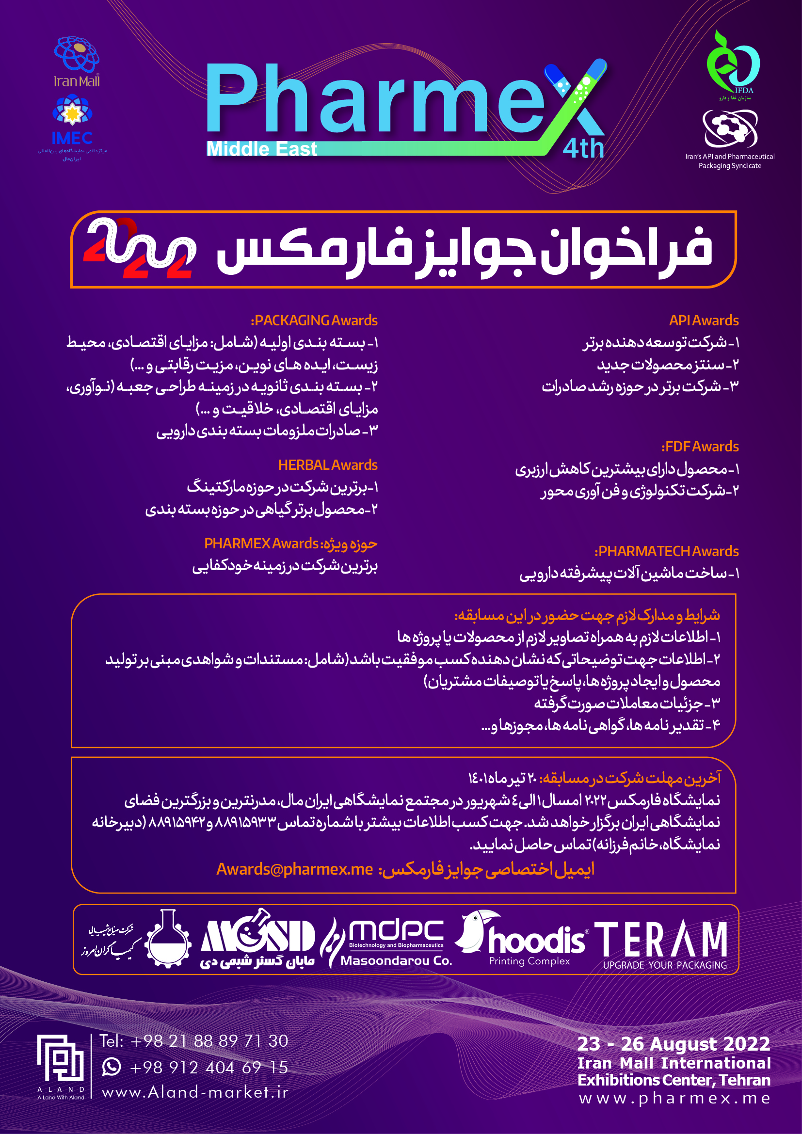 ?ایمیل اختصاصی جوایز فارمکس: Awards@pharmex.me//