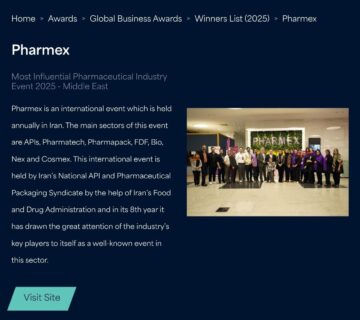 این مجله معتبر کسب و کار و برگزارکننده جایزه جهانی Global Business Awards پس از انتخاب فارمکس خاورمیانه به عنوان “تاثیرگذارترین رویداد دارویی خاورمیانه” پروفایل رویداد تخصصی دارویی کشورمان را منتشر کرد. در این شاخه ضمن انتشار یک تصویر از همکاران دبیرخانه فارمکس خاورمیانه به توصیف آن پرداخته است. با ... ادامه مطلب